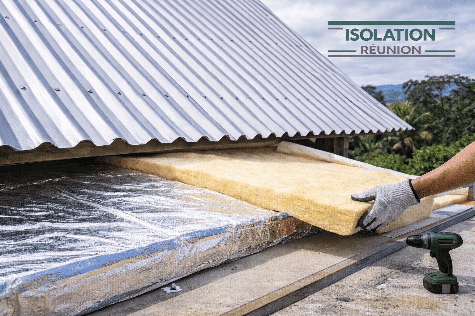 Les toitures en bac acier sont très répandues sur l’île. L’isolation sous toiture avec des matériaux adaptés au climat tropical permet de limiter la transmission de chaleur vers l’intérieur du logement.